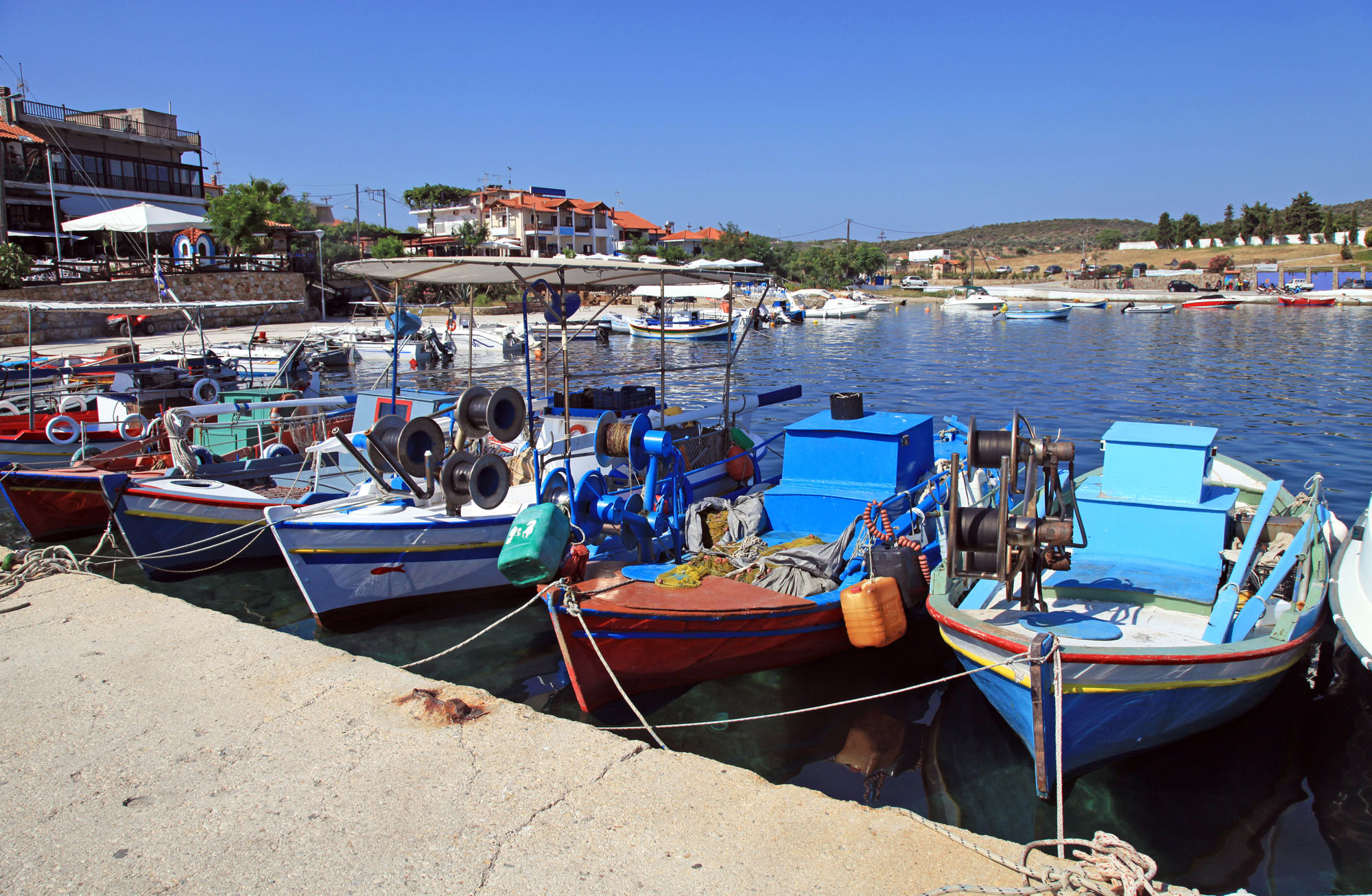 Between the Western Cape, called Kokkino and Eastern Cape called Trigona there are many small coves and beautiful sandy beaches. There are beautiful accommodations that are available even during the summer. To the west of the island there is the famous Alikes beach and to the east there is a wonderful beach called Gastri. Very close to Ammouliani are situated the uninhabitable small islands: Gaidouronisia, Drenia, Penna and Artemis which feature many beautiful sandy beaches. Both from Ammouliani but also from the mainland guests can rent motorboats and make day trips to these islands.