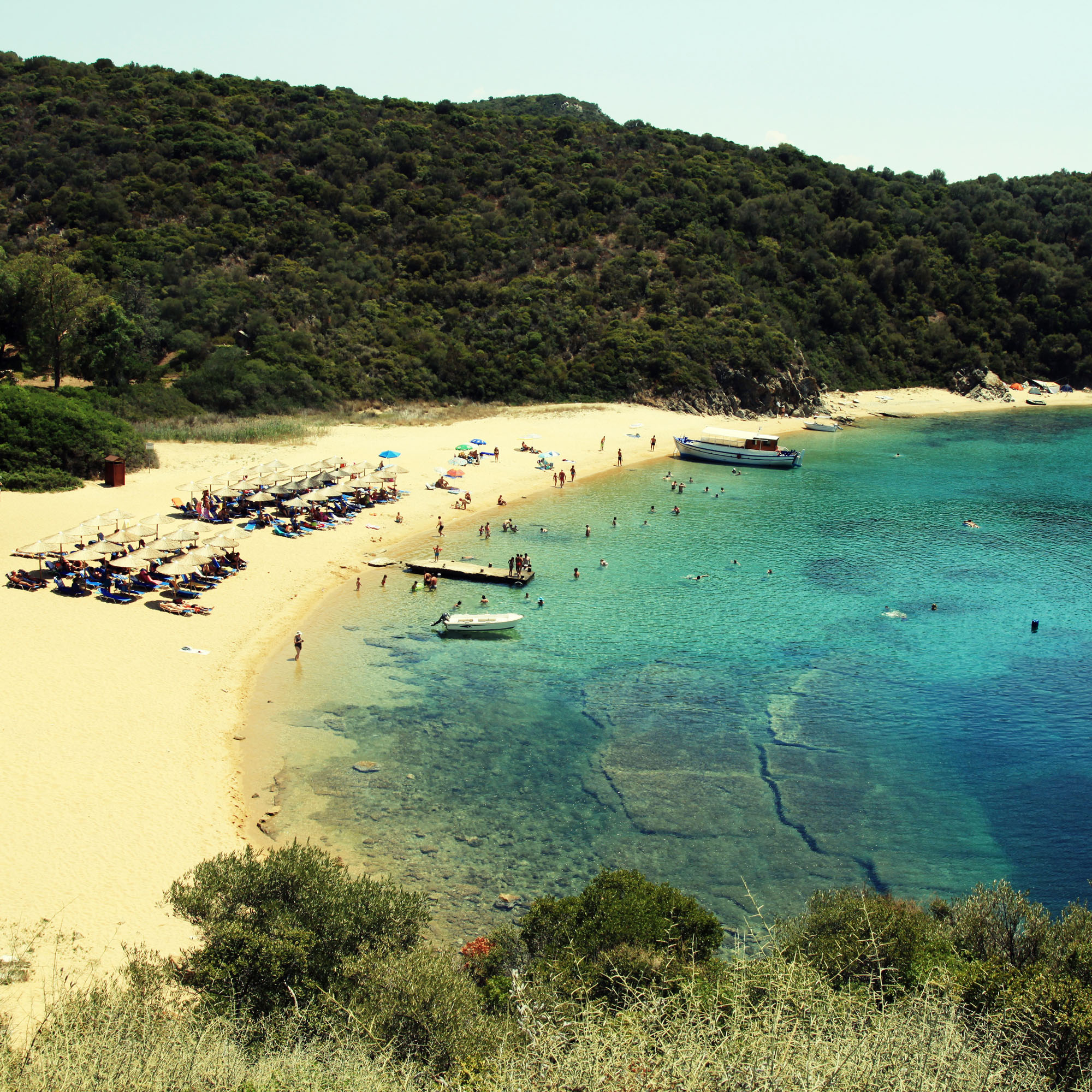 The beautiful sandy beaches are suitable for diving, because between the beaches there are beautiful, jagged rock formations that extend very deep into the Aegean sea.
