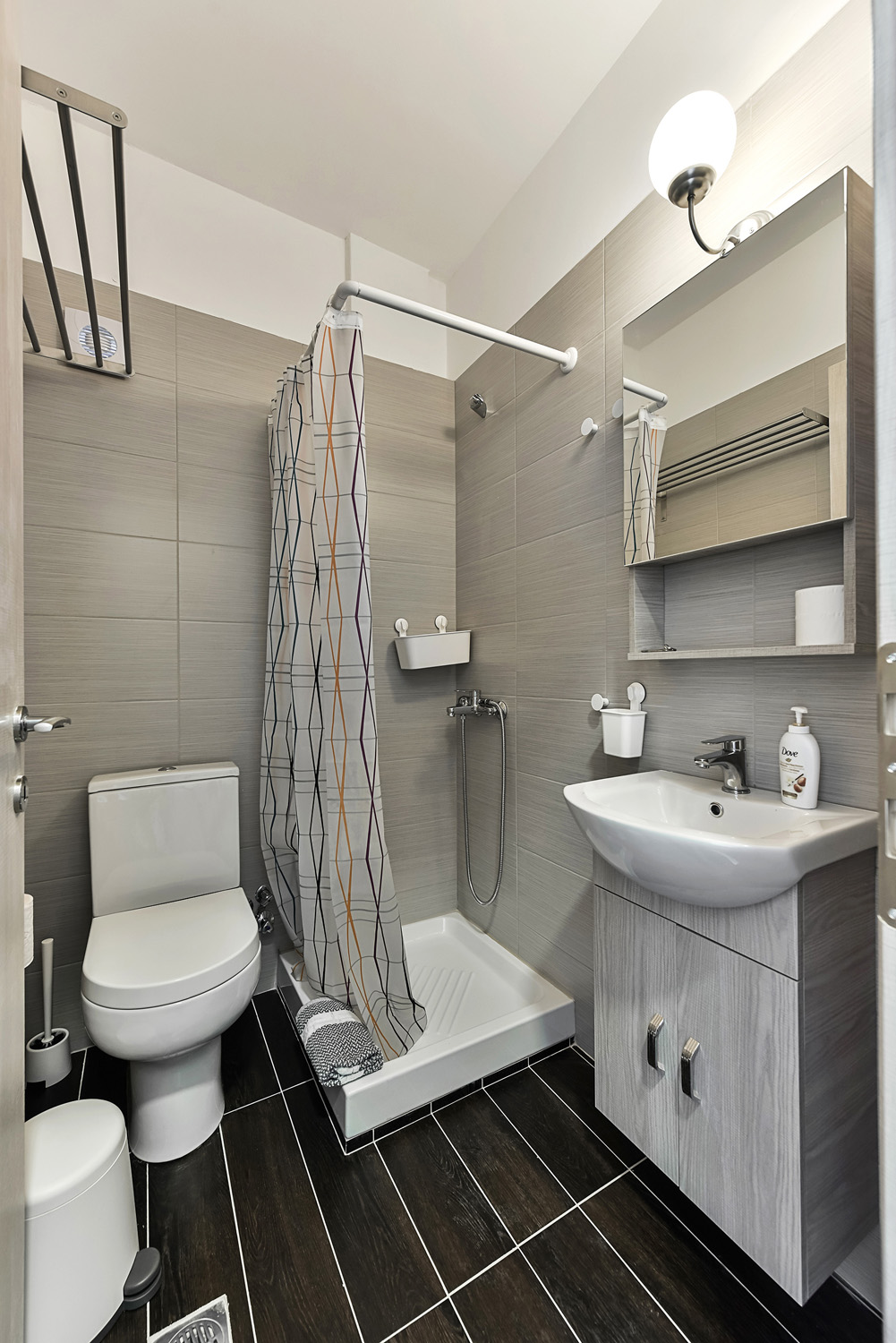 It consists of an renovated bathroom.